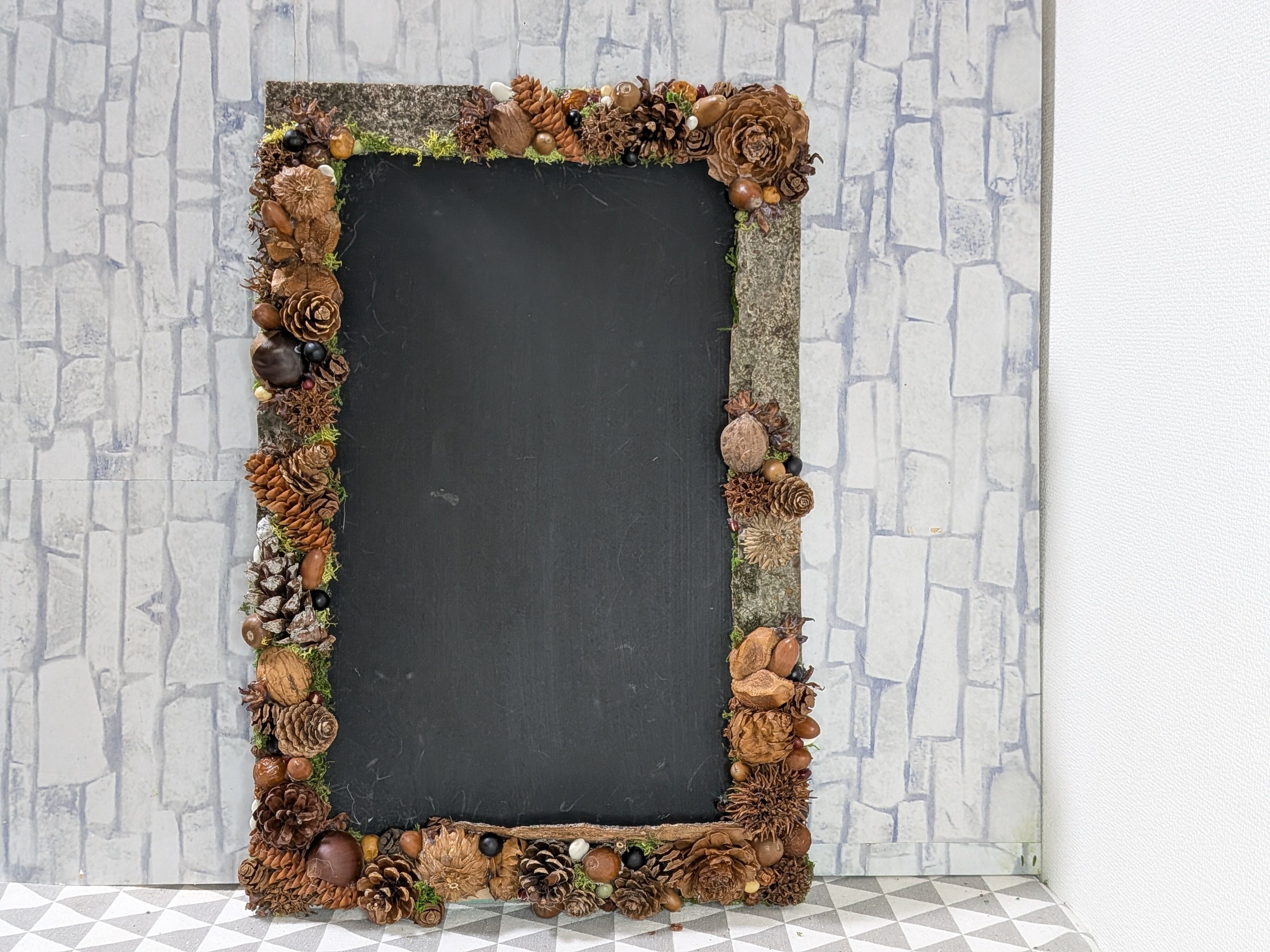 ボードの周りには、全国各地で集めた10種類以上の木の実で装飾が施されており、温もりのある雰囲気を演出します。
