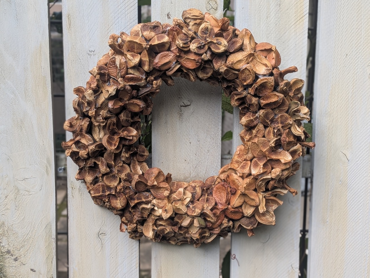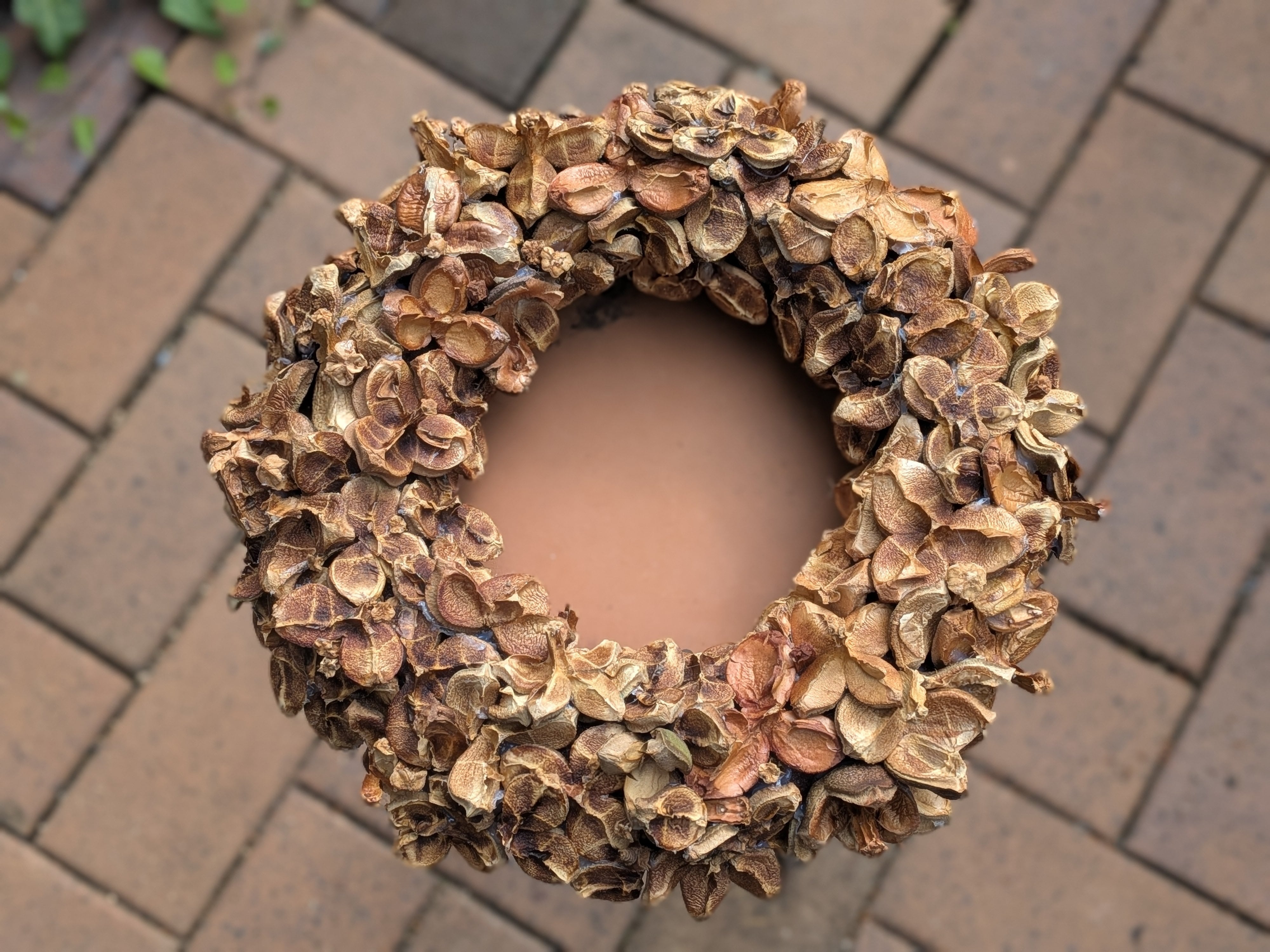 椿のみのリース E はスタイロフォームの台の上に椿の実を美しく配し、明るい茶色が特徴的で、見る人の心を惹きつけます。直径約30cmの大型リースは、存在感がありつつも、どこか落ち着いた雰囲気を醸し出します。リボンをつければ、一瞬でクリスマスリースに変身し、季節ごとの特別な空間を演出します。作者が全国各地で集めた自然素材を生かしたこのリースは、玄関に飾るだけでなく、リビングやダイニングにもぴったり。訪れる人々に暖かい歓迎の気持ちを伝え、心地よいひとときを提供します。椿の実の持つ素朴ながらも高雅な風情は、日常の喧騒から心を解き放ち、心安らぐ空間を作り出します。季節ごとの変化を楽しみたい方、自然を愛する方に特におすすめです。